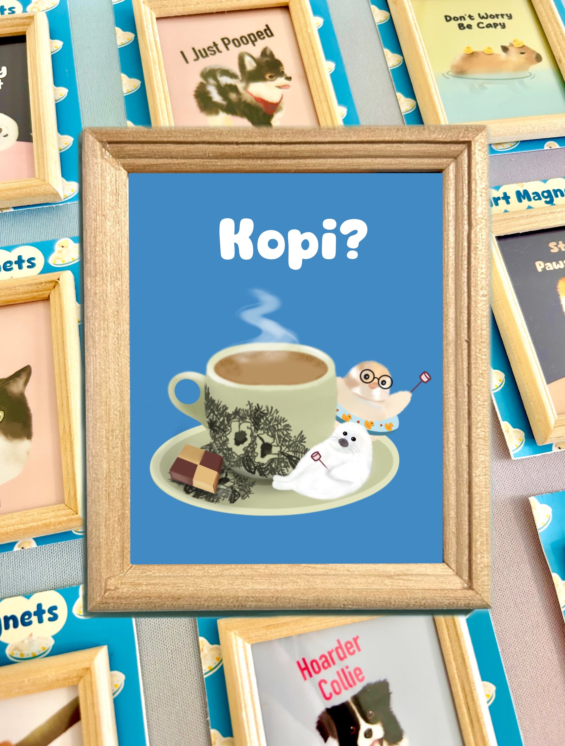 Each magnet features my illustration and is handmade with love! With an included mini easel, you can choose to display it on a shelf, desk, or any magnetic surface!